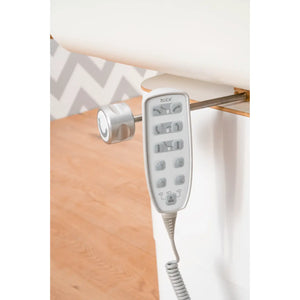 En lugar del pedal, puede utilizar el control remoto de mano para controlar la altura y la inclinación del asiento con solo tocar un botón.