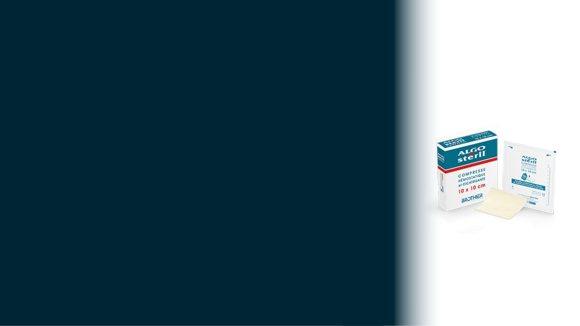 Distributeur :AlgosterilCompresses Algostéril hémostatiques cicatrisantes stériles - 3 formats - Laboratoires Brothier