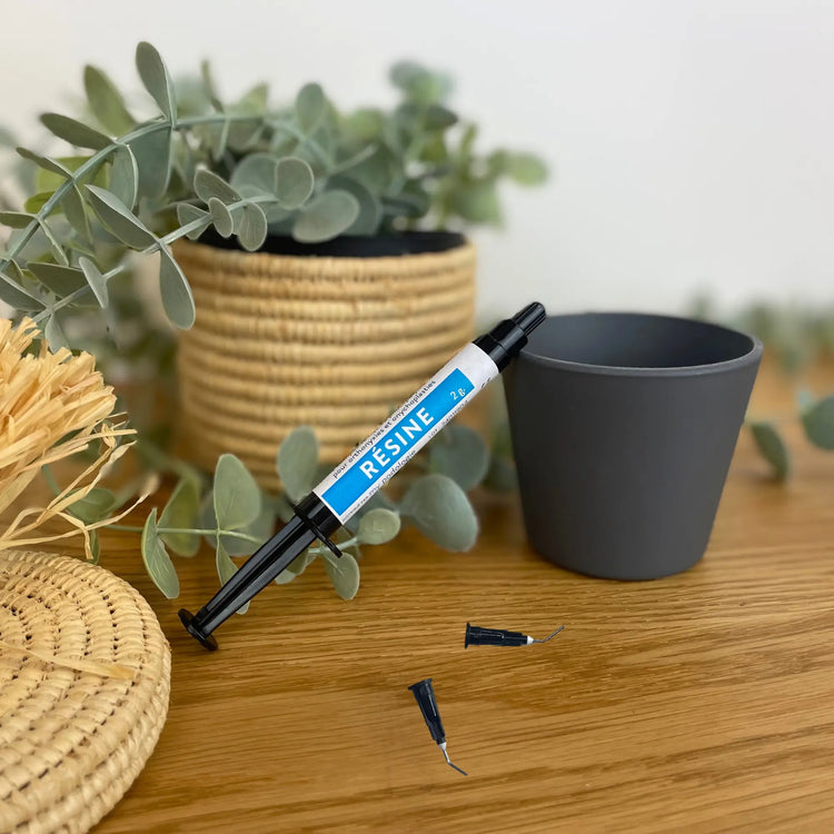 Résine composite photopolymérisable transparente sous forme pâte fluide conditionnée en seringue de 2g