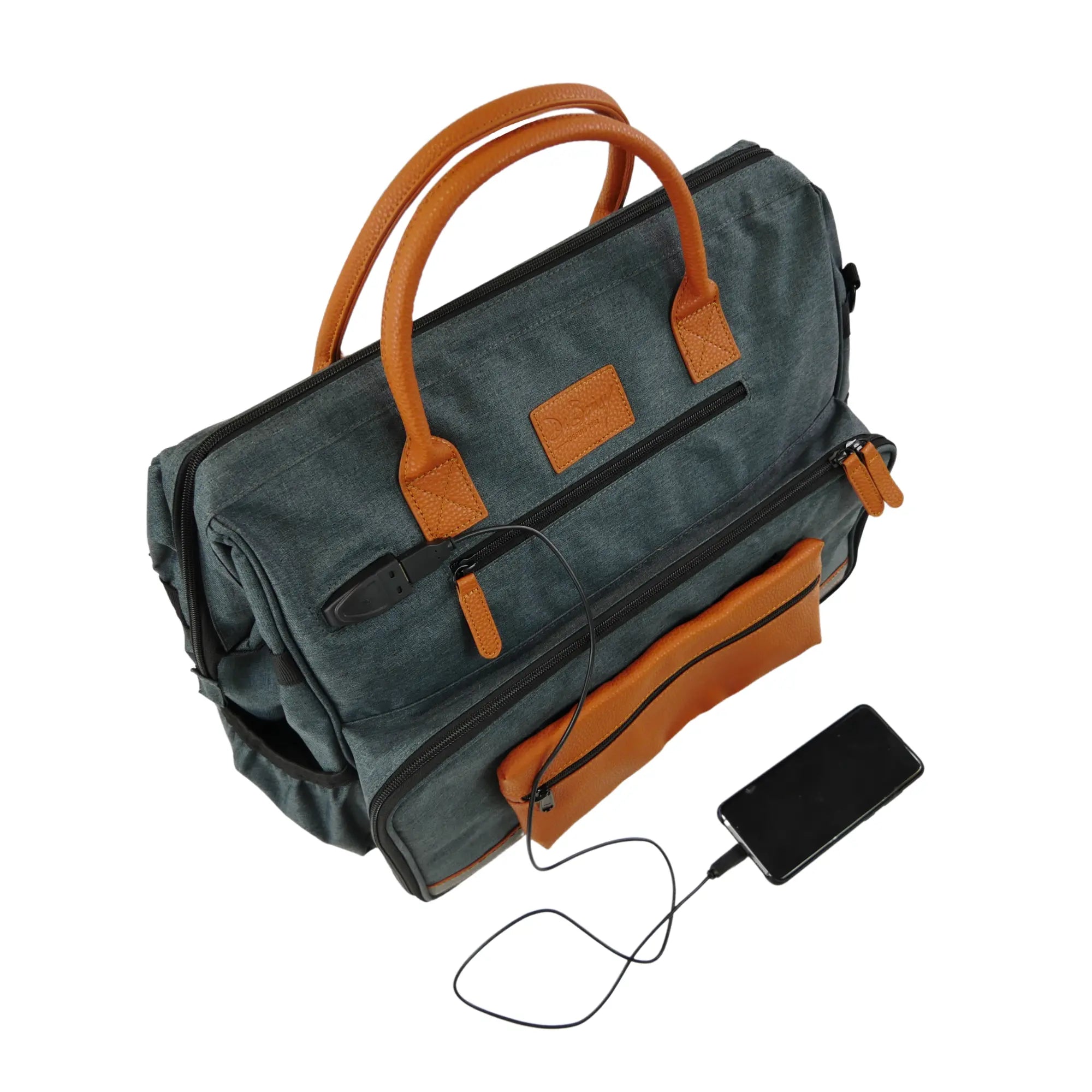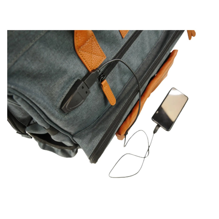 Un port USB externe avec câble de chargement intégré permet de brancher une batterie de secours et ne jamais tomber en panne de téléphone, ou oublier son chargeur chez un patient.