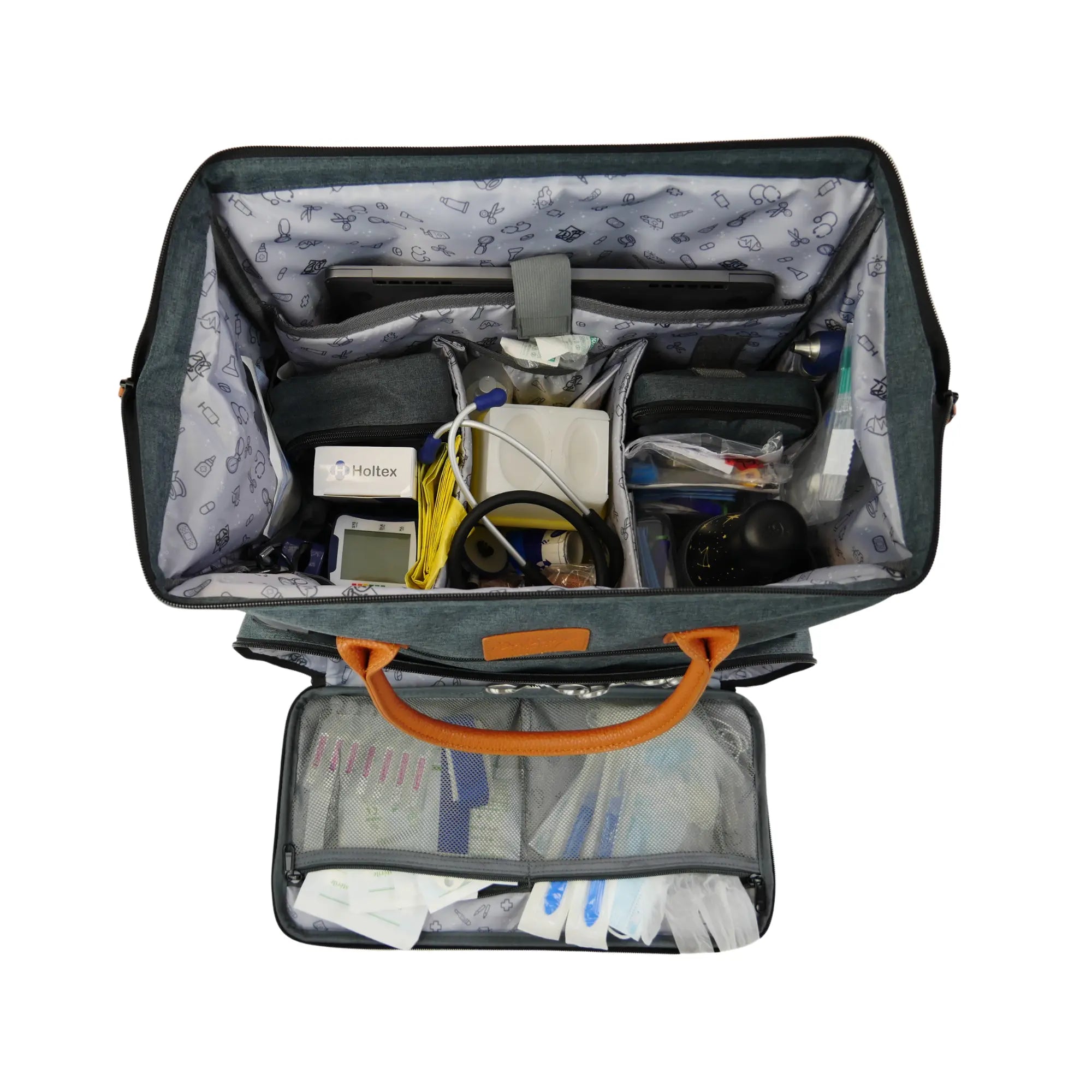 Avec une très grande ouverture à zip bidirectionnel, il donne accès très facilement aux instruments de diagnostic et matériel de soin.